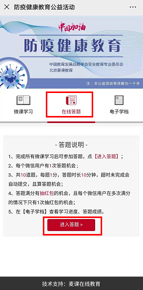 通過以上兩種方式登陸后,輸入學校名稱和學號,便可開始防疫健康相關課程的學習,完成17門課程的學習可進入測試。