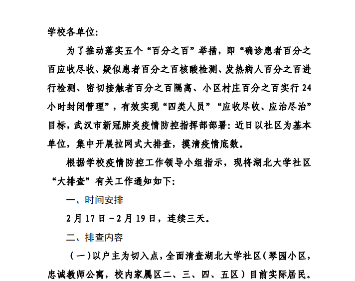 來源:湖北大學(xué)疫情防控指揮部 作者: 編輯:鮮文濤 時間:2020-02-17 字號: 【大】 【中】 【小】
