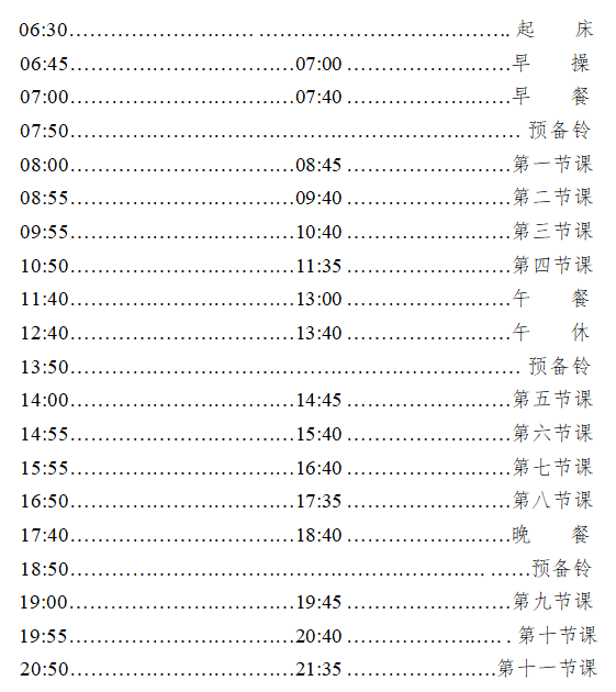 1.學生課外活動和政治學習時間為周三下午,周三第六、七節課可適當安排教學活動。