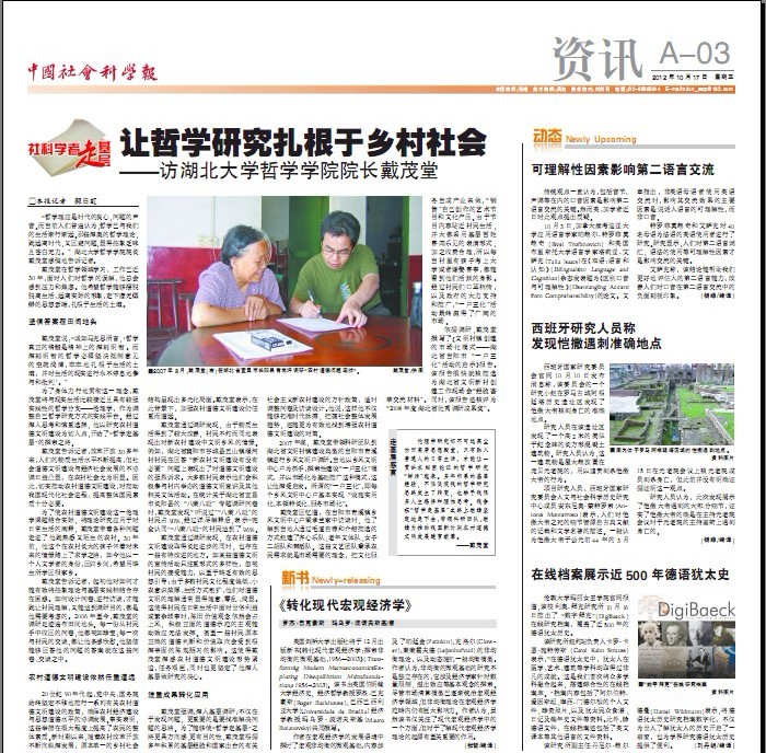 讓哲學研究扎根于鄉村社會——訪湖北大學哲學院院長戴茂堂