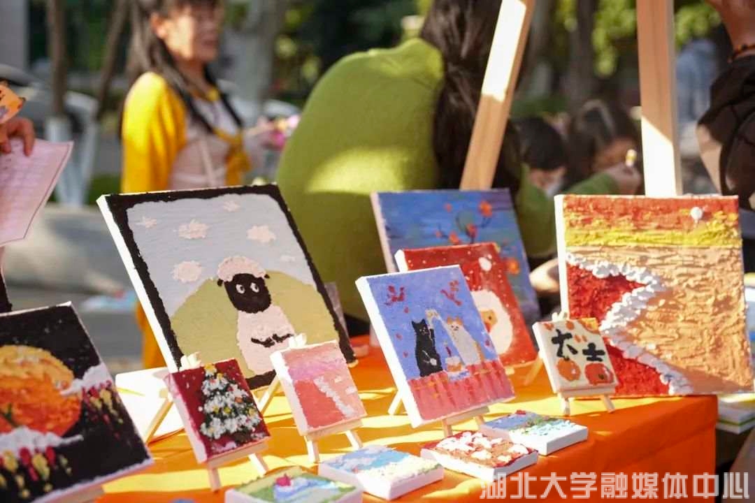 據悉,此次美育體驗日由湖北大學團委主辦、宣傳部提供支持,藝術學院承辦。活動負責人陳鑫宇介紹,各展位由藝術學院20個班級和各學生組織共同開展,活動準備期長達一個半月,歷經了很多挑戰,大到海報、橫幅,小到游園地圖、每個展位個性化的活動貼紙都是同學們自己設計的。