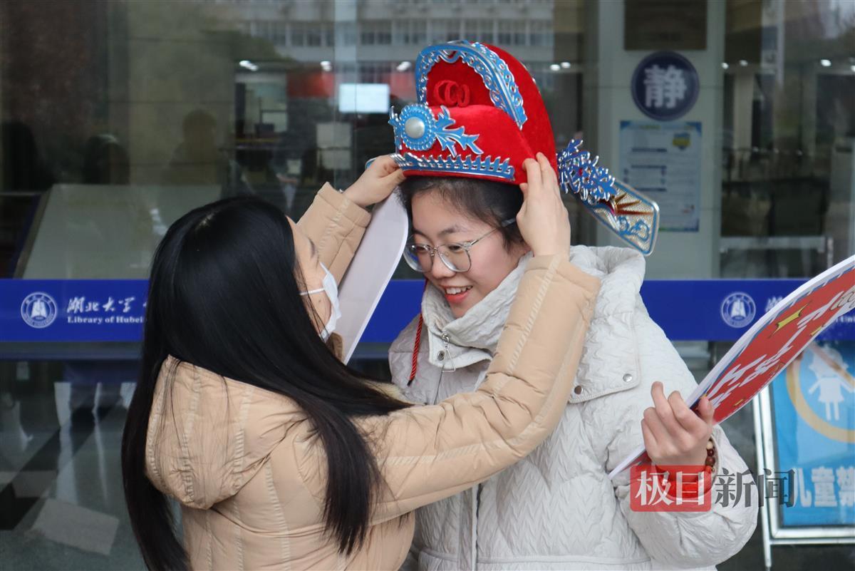“再加把勁,碰到了一定高‘粽’!”12月18日,在圖書館門口,文學(xué)院舉辦了第六屆“考研送溫暖”活動。熊娟涓頭戴“狀元帽”,用力一躍,去頂用竹竿高舉的粽子,想討個(gè)“高中”的好彩頭。學(xué)子們還將承載著對“研途”美好希冀的便利貼置于“金榜題名”立牌上,并取下立牌上粘有的棒棒糖,寓意“探花”。