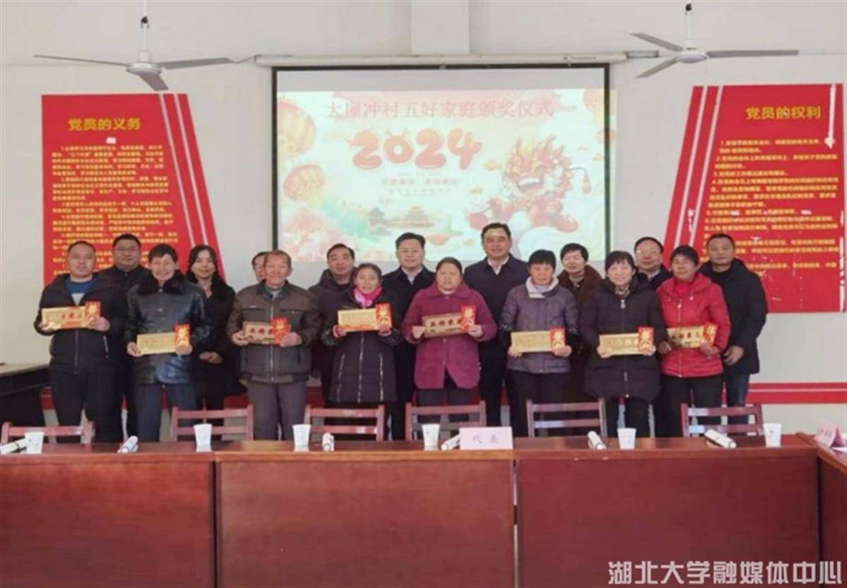 此次“五好家庭”頒獎活動是在學校機關黨委和石頭咀鎮黨委、大屋沖村支委共建“大屋沖村新時代文明實踐站”的基礎上,加強大屋沖村精神文明建設、注重家庭家教家風建設的有力舉措,系該村首屆“五好家庭”評選表彰。前期,在學校機關黨委指導下,經村民小組、村兩委和駐村工作隊共同努力,在全村范圍遴選出8個“五好家庭”代表。這些家庭中既有崇尚文明、勤儉節約之家,也有弘揚美德、互敬互愛之家,既有重視教育、以德育人之家,又有家庭美滿、鄰里團結之家,既有樂于助人、甘于奉獻的友善之家,也有相濡以沫、患難與共的堅強之家,彰顯了無數平凡而可敬的家庭日常生活的真實縮影,極具代表意義,對激勵廣大村民愛國守法、勤勞致富、移風易俗、尊老愛幼、鄰里和睦起到很好的典型示范作用。