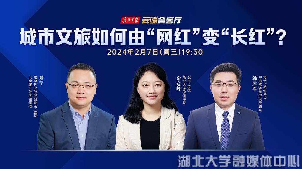 近日,長江日報云端會客廳邀請北京第二外國語學院旅游科學學院副院長、教授鄧寧,湖北大學旅游學院院長、教授余意峰,中國旅游研究院戰略所博士、副研究員韓元軍三位嘉賓做客,圍繞相關問題展開討論。