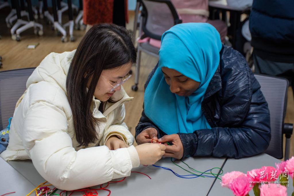 荊楚網(wǎng)(湖北日?qǐng)?bào)網(wǎng))訊(記者許文秀 通訊員李歡燃 馬田羽 攝影鄭川威)“從下面繞過來,轉(zhuǎn)一個(gè)圈,把綠線穿到黃線里……”3月7日中午,一場熱鬧非凡的傳統(tǒng)編織教學(xué)活動(dòng)在湖北大學(xué)舉行。該校退休女教師代表、中國師生代表和來自巴基斯坦、坦桑尼亞、巴西等國家的留學(xué)生聚集一堂,在非遺體驗(yàn)中共同迎接“三八”國際婦女節(jié)的到來。