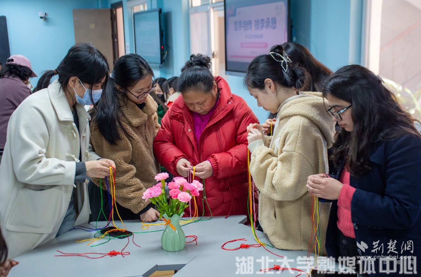 湖北日報訊(記者韓曉玲、通訊員李歡燃、馬田羽)3月7日中午,湖北大學離退休工作處與曼城聯合學院共同組織了一場傳統編織教學活動。退休女教師代表、中國師生和留學生代表歡聚一堂,以體驗中國傳統編織的方式,共同迎接“三八”國際婦女節的到來。