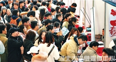 在湖北大學招聘會現場,中國通信建設、中國水利水電、中建七局、海亮教育科技服務集團等323家用人單位,覆蓋制造業、建筑業、金融、公共服務、教育等行業領域,攜7000多個崗位進校招攬人才。其中,很多企業都提供了管培生、實習生的崗位。