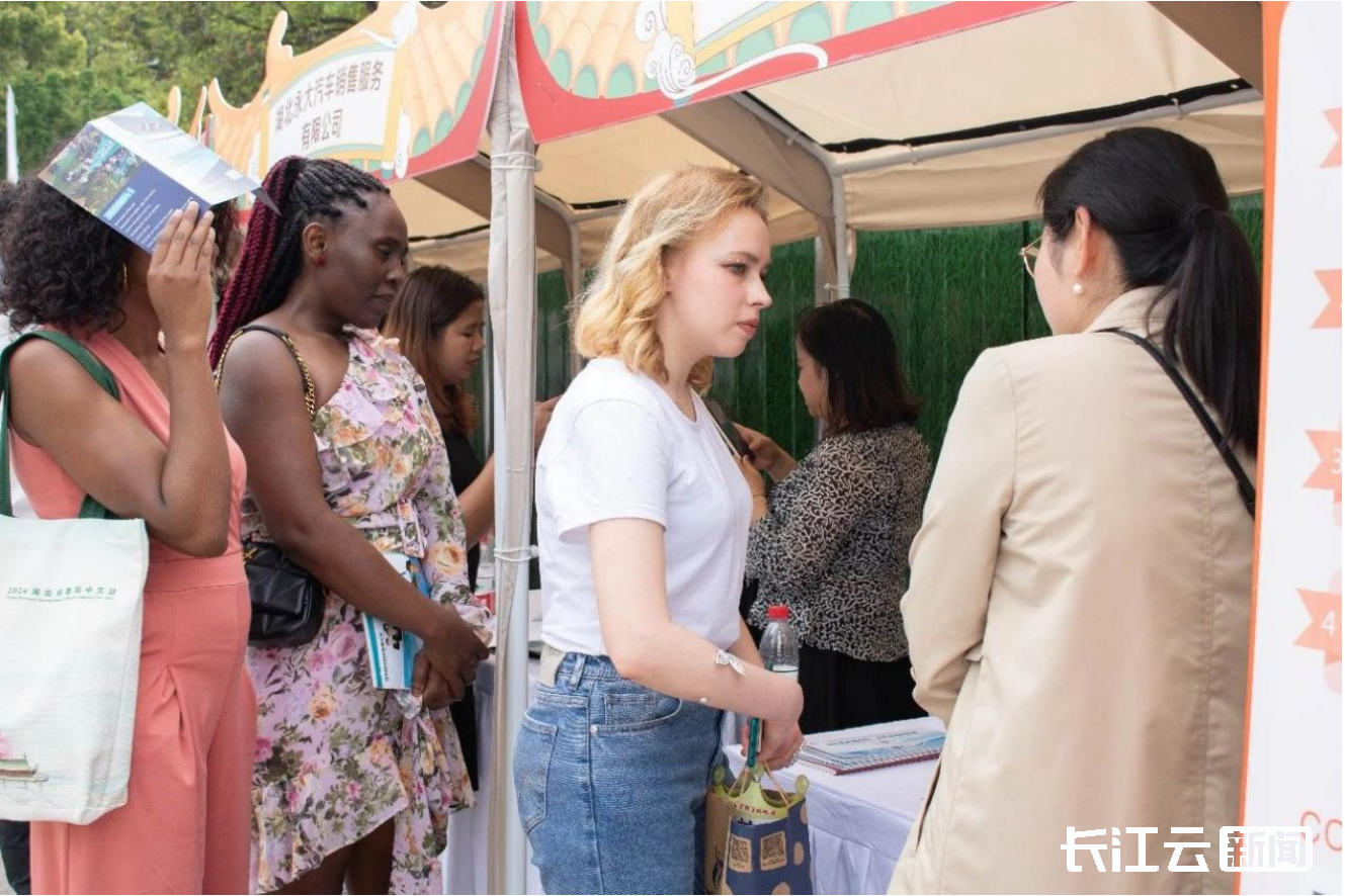 活動現場共設置12個荊楚文化展臺,高校中外學子一起擔任地方文化推薦官,分別介紹武漢、宜昌、襄陽等12個城市的地域文化。現場還首次舉辦了湖北省國際學生專場招聘會,提供了百余崗位,受到了國際學生們的歡迎。