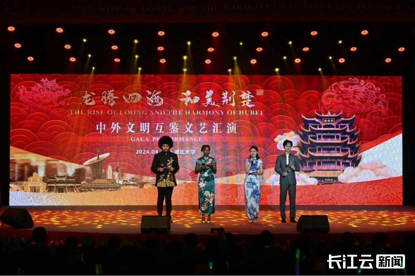當天,還舉行了“龍騰四海,和美荊楚”中外文明互鑒文藝匯演,來自華中師范大學、中南民族大學、湖北大學、湖北工業大學、武漢紡織大學等中外師生代表通過詩歌、音樂、戲劇等形式,見證了不同文化的交融與碰撞,傳遞中外文明互鑒的美好愿景。