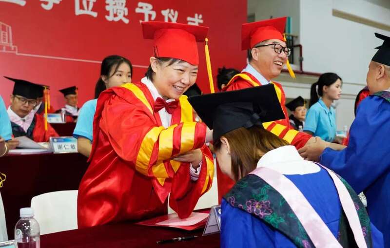 6月24日,在廣西藝術學院2024屆畢業典禮暨學位授予儀式上,廣西藝術學院黨委書記查丹明和校長韋俊平為畢業生撥穗。廣西藝術學院供圖
