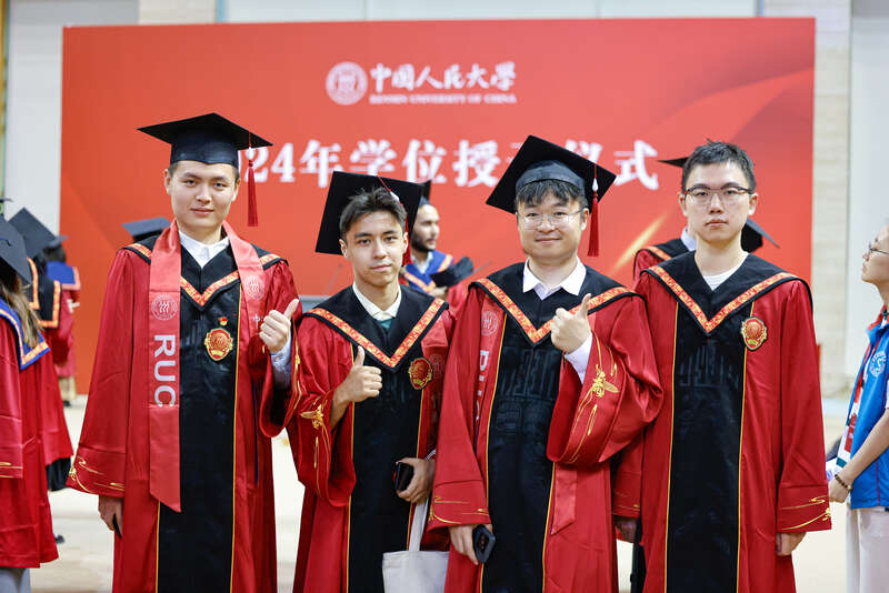 中國人民大學2024年學士學位授予儀式現場,畢業生合影留念。中國人民大學供圖