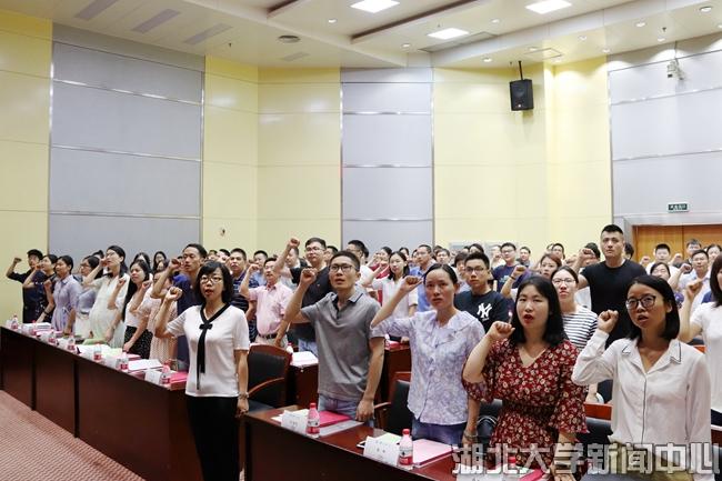 在開班典禮上,全體新進教職工鄭重宣誓:投身教育科研事業,做有理想信念、有道德情操、有扎實學識、有仁愛之心的好教師。莊嚴的誓詞激發了新教師的職業神圣感,增強了使命感和責任感。