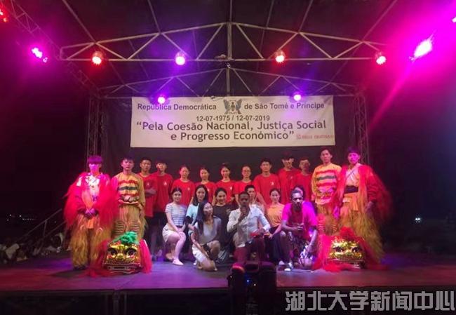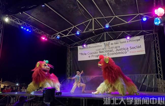 當地時間7月12日,適逢圣普獨立日,湖北大學龍獅藝術團受邀參加在首都圣多美獨立廣場舉行的慶典。湖北大學師生的舞龍舞獅和武術、歌舞等表演,讓當地民眾近距離接觸了中國文化和藝術,激發了他們了解中國語言文化、前往中國交流訪問的興趣。
