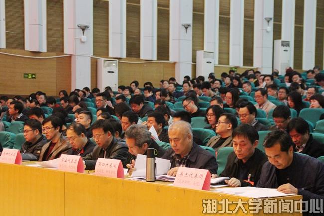 謝紅星深入分析了高等教育自身發(fā)展規(guī)律和形勢、湖北大學自身發(fā)展狀態(tài),指出當前和未來幾年,學校要堅持保基礎(chǔ)、保民生、保重點、促中心。同時,要正確處理好規(guī)模、結(jié)構(gòu)、質(zhì)量的關(guān)系,統(tǒng)籌好改革、發(fā)展、穩(wěn)定的關(guān)系,平衡好一流學科建設與人才培養(yǎng)、師資隊伍建設、科學研究、國際化辦學的關(guān)系,協(xié)調(diào)好創(chuàng)建一流與辦出特色的關(guān)系。