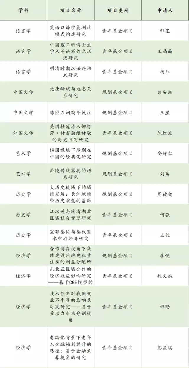 3月15日,教育部正式公布了2019年度教育部人文社會科學(xué)研究一般項目評審結(jié)果。湖北大學(xué)有26項獲批立項,排位全國高校第13位、湖北高校第3位,實現(xiàn)了湖北大學(xué)在該項目的歷史性突破。其中,獲批規(guī)劃基金項目8項,青年基金項目17項,高校示范馬克思主義學(xué)院和優(yōu)秀教學(xué)科研建設(shè)團(tuán)隊項目 1項。