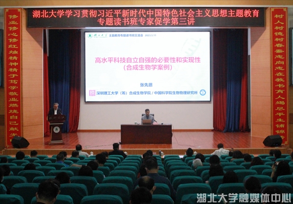 5月11日,學校舉行學習貫徹習近平新時代中國特色社會主義思想主題教育專題讀書班專家促學第三講,專題研學習近平總書記關于科技創新的重要論述。深圳理工大學(籌)合成生物學院名譽院長、講座教授,中科院生物物理研究所研究員張先恩應邀作輔導報告。校領導,全校中層干部,民主黨派負責人、無黨派代表人士、僑聯負責人和生命科學學院師生代表參加報告會。校黨委書記謝紅星主持報告會。