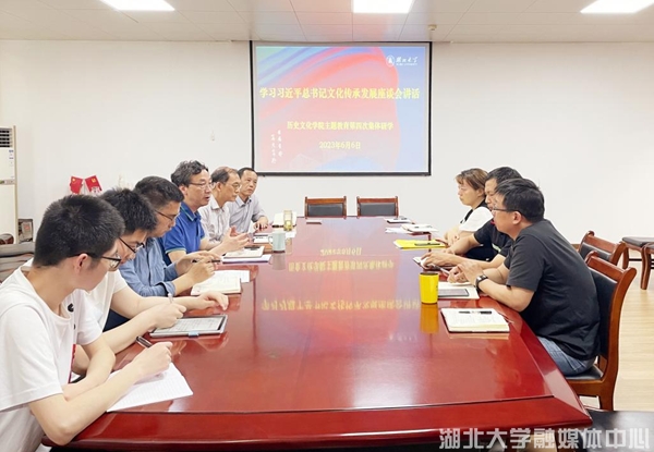 6月6日,歷史文化學(xué)院黨委組織開展主題教育集中研學(xué)活動,專題學(xué)習(xí)習(xí)近平總書記在文化傳承發(fā)展座談會上的重要講話。學(xué)院領(lǐng)導(dǎo)班子、黨委理論學(xué)習(xí)中心組成員,國家級人才專家、青年教師和學(xué)生代表參加研學(xué)。